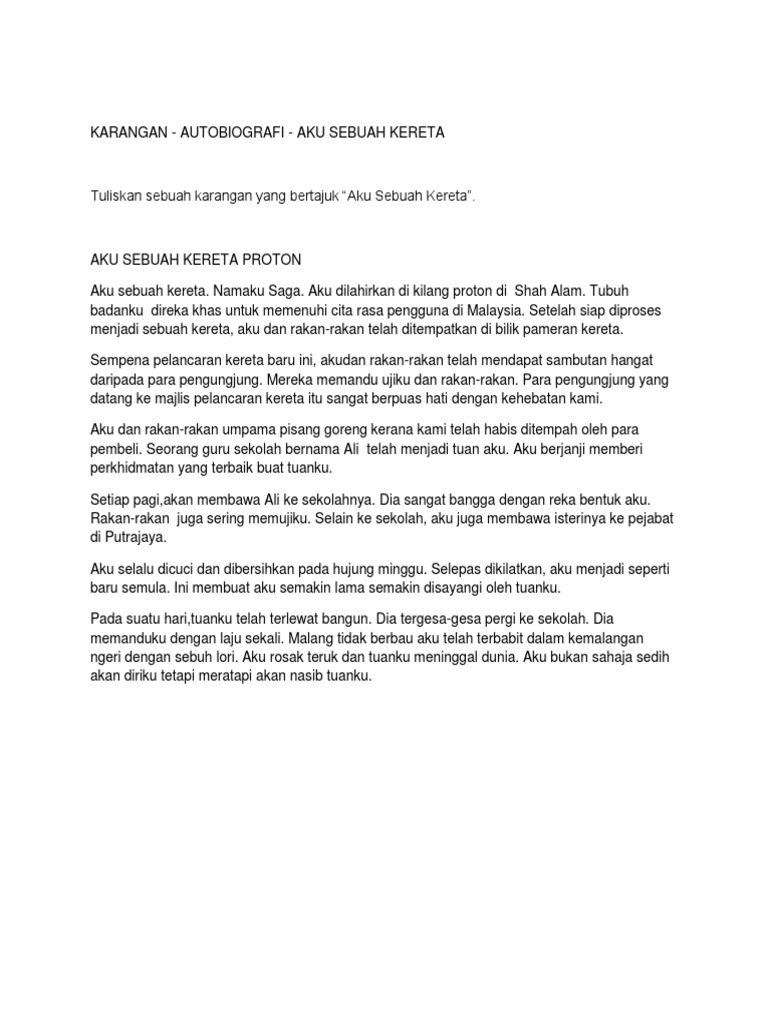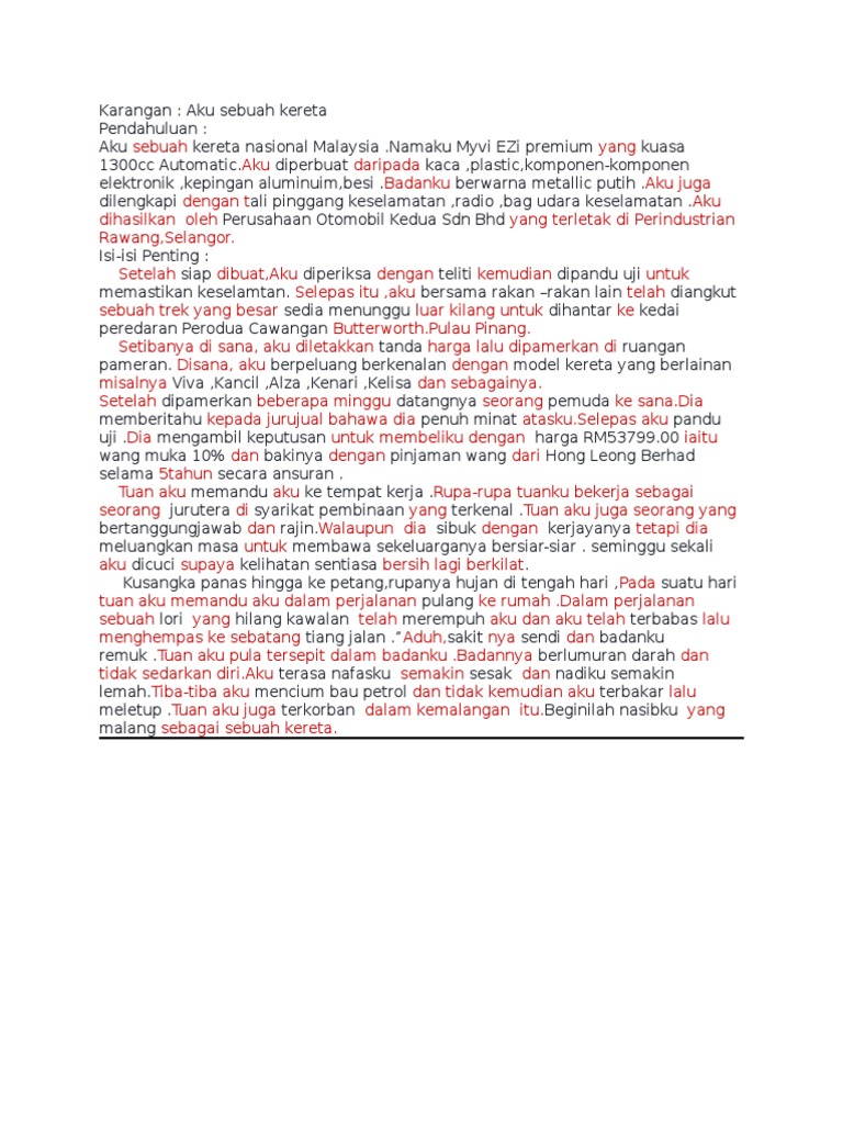 Karangan Upsr Aku Sebuah Kereta Karangan Net